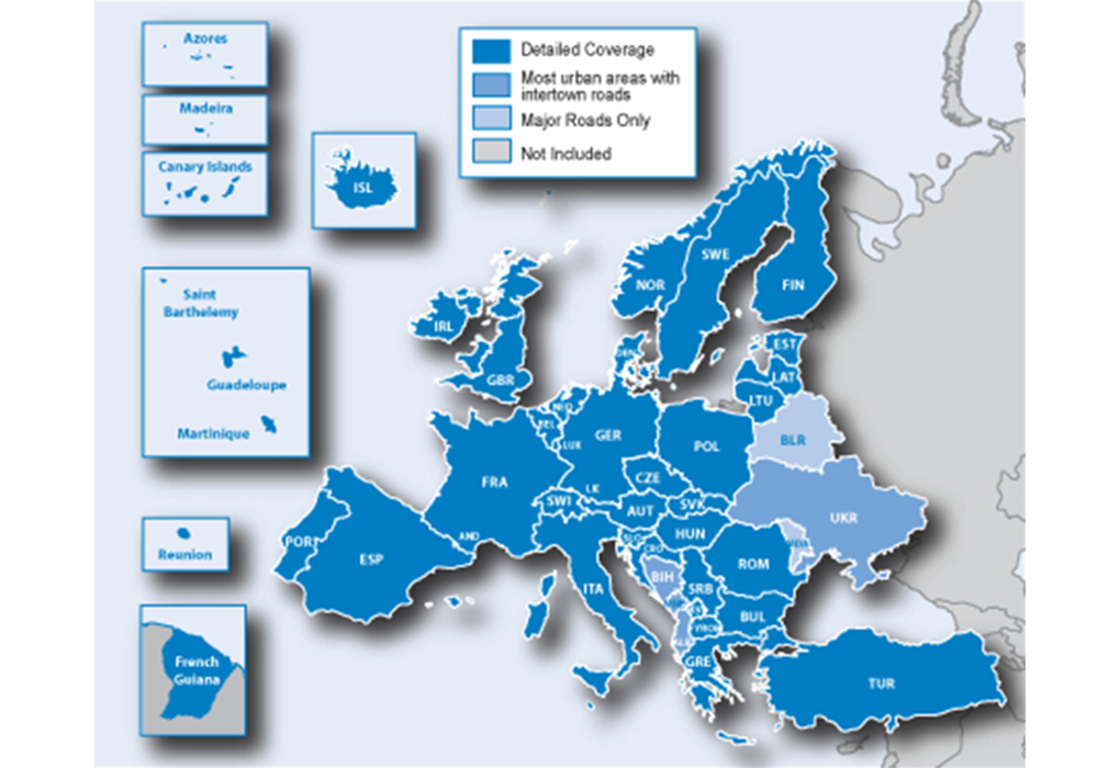 - Includes full country coverage for Western Europe and many countries in Eastern Europe