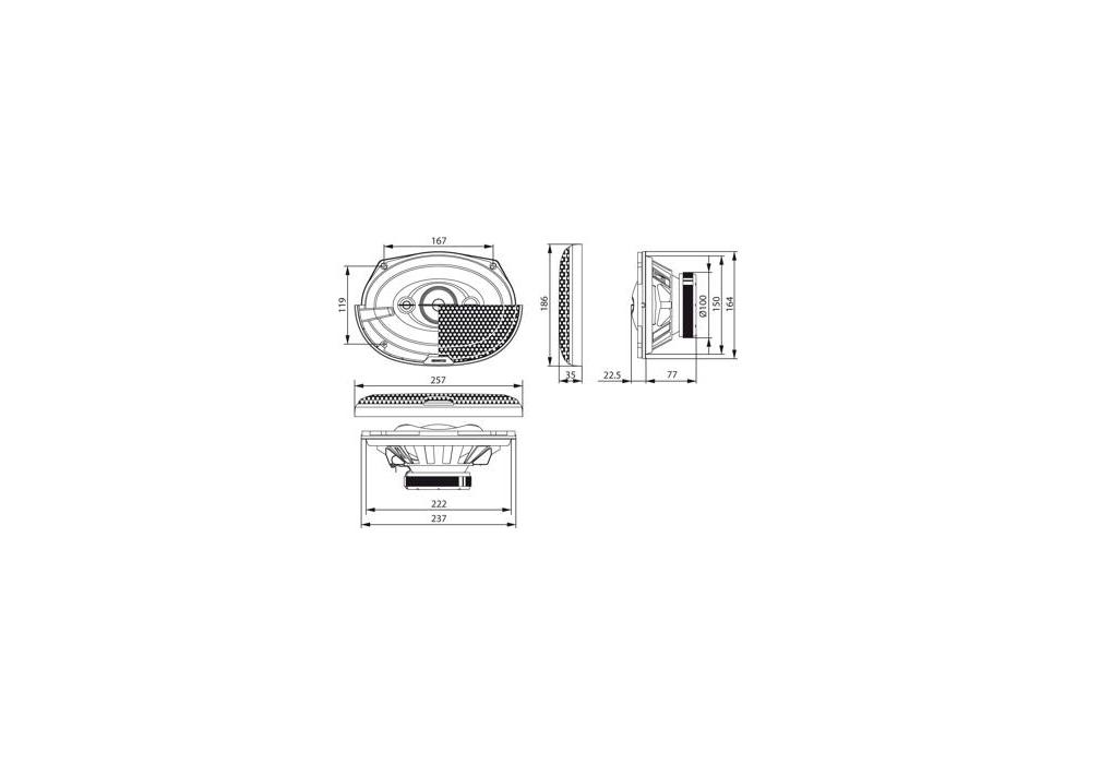 - 70mm Midrange speaker, 20mm Tweeter, 20mm Super Tweeter